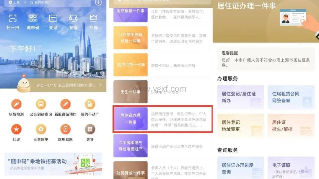 通过“一网通办”PC端总门户、“随申办”APP以及微信、支付宝小程序全流程线上办理,按期生成《居住登记凭证》《上海市居住证》电子证照。
