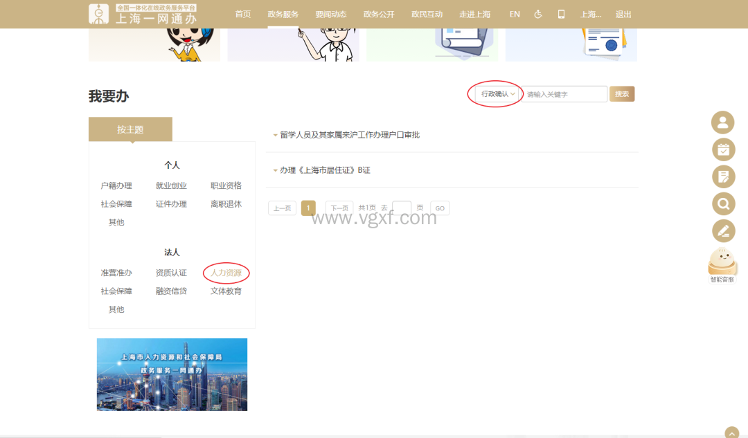 4、按主题选择“法人”目录下的“人力资源”一栏,类型选择“行政确认”。