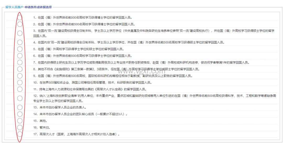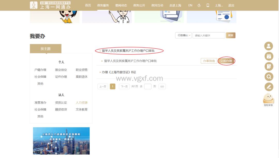 5、选择“留学人员及其家属来沪工作办理户口审批”。