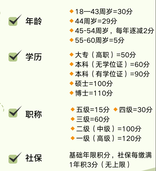 🔹合规缴纳:必须是依法按月缴纳城镇职工社会保险,补缴、漏缴、灵活就业人员缴纳(除非有特别规定)等情况在积分审核中通常不予计算。