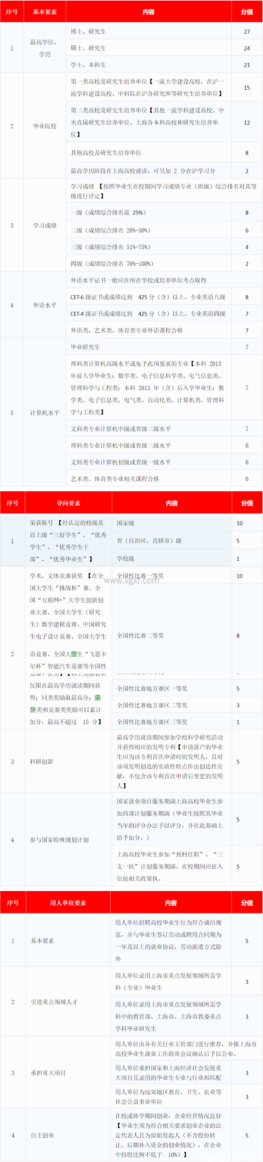 2022应届生落户上海72评分细则要素包括最高学位和学历、毕业学校、学习成绩、外语和计算机水平、用人单位要素分等几个方面。