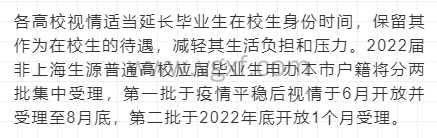 由于今天上海上半年疫情影响,2022年的上海研究生落户审批时间有点特殊,2022届非上海生源普通高校应届毕业生申办本市户籍将分两批集中受理!